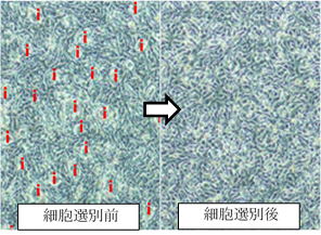 iPS細胞から分化・誘導した細胞には、未分化状態の細胞も残っており、未分化細胞をそのまま放置しておくと、望まない細胞に分化する可能性があります。そのため、目的の細胞に分化・誘導した細胞だけを選別する必要があります。