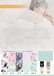 「安心住まい」WGでは産技研も参画し、各社の技術やノウハウを組み合わせ、透湿・防水,抗ウィルスといった先進機能を兼ね備えた肌触りが良い素材に京都らしい和柄をあしらうことで、機能性だけでなく感性価値の高い「防水シーツ」を開発しました。