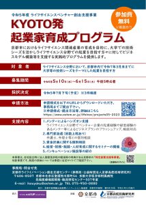 令和5年度ライフサイエンスベンチャー創出支援事業 「KYOTO発起業家育成プログラム」の公募について【受付を終了しました】