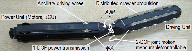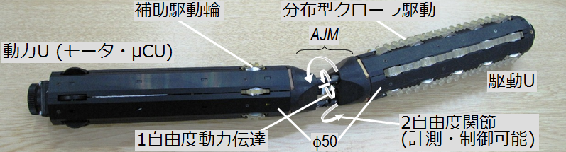 「先端能動機構 (Leading Active Mechanism; LAM)」の開発。単独でも小型移動ロボットとして機能し、次の構成を有する。