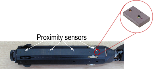HTC3) 側面近接覚環境検知モジュール (Lateral Proximity Sensing/Environment Detection Module; LEDM/LPSM):LAM機体側面への小型赤外レーザ素子の組込みにより、全周6側面24点にて機体表面~100mm (一部実績値として、表面~200mm) 範囲の距離計測能力を有する。