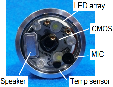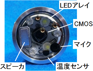 HTC2) 前方マルチモーダル探索センサユニット (Multimodal Search Sensor Unit; MMSS):44mm径、内蔵SoCを含むマルチモジュール構成によるセンサデータ集約・LAN伝送、映像ストリーミング、双方向対話、3D姿勢、環境情報などの検知機能を構成できる。