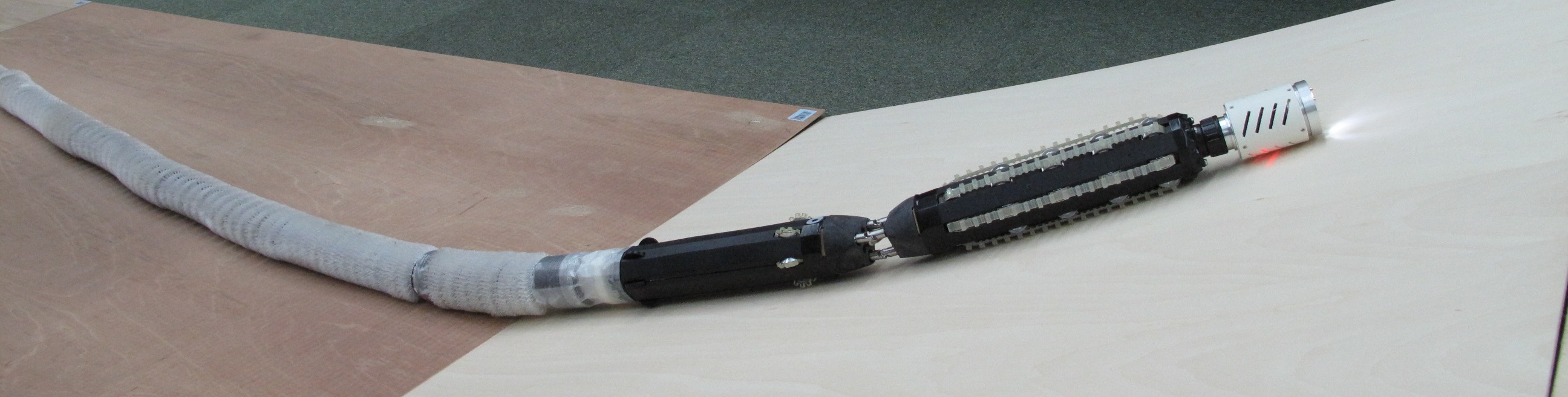 前項までの結果により、50mm径、10.5m長の「先端能動機構を用いた細索状ロボットシステム」を構成し、移動・探索において、従来機の技術課題を解決し、能力を災害/事故現場で必要とされる作業に適合したものに大きく拡大した。