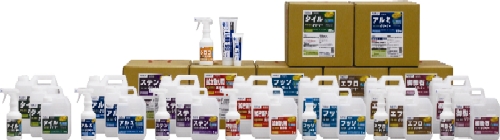 - 有機酸を利用することにより建築素材を傷めることなく素材本来の風合いを安全に取り戻すことが出来る「修復洗浄剤」を中心に製造・販売を行っています