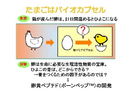 機能性食品素材の開発・販売を行っている。生命活動と健康維持に重要な「免疫」、「代謝」、「神経」という3つの機能についての研究開発をコンセプトとし、鶏卵、野菜、緑茶、乳酸菌など身近な食品素材から生理活性物質を探求し、科学的考証に基づいた素材の開発及び安全で安心な素材の提供を行っております。