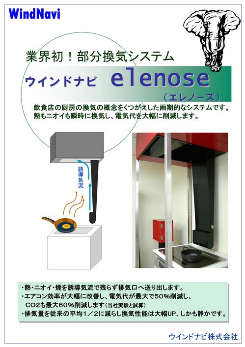 そして、その技術から生まれた商品「エレノーズ」を使って室内の汚染質を収束分離したまま排気口から効率良く排出、室内のエアバランスを微陽圧化する換気計画をすれば、室内環境が快適になり省エネ、省運用コストで地球環境にも貢献するという商品の企画製造・販売事業をおこなっている。