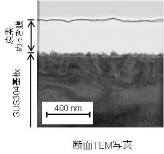 - 「炭素めっき」(特許第4756132号、特許第5112010号、特許第5557434号、US 8,951,401):緻密質炭素めっき膜は、導電性の炭素膜として十分な硬度があり、従来の炭素コーティング法と比較して密着性にも優れます。また、バインダーレスで、非常に耐食性が高いことが特長です。これらの特長から、燃料電池セパレーターやリチウムイオン二次電池/キャパシタの集電体への適用が期待されています。