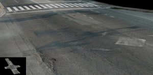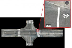 特徴点が少ない舗装路面(通行車両あり)に対しても、独自のプロセスにより、高詳細なSfM解析ができる。(写真は京都市伏見区国道1号赤池交差点)