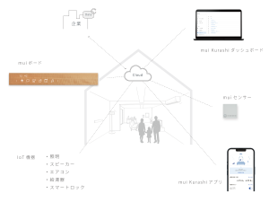 - スマートホーム導入のためのプラットフォームである「mui Smart Living」を、宅内顧客接点構築のためのDXソリューションとして企業に提供しています。クラウドやスマートホーム専用のMatterやECHONET Lite等の通信規格に準拠、またシンプルで使いやすいUI/UXデザインを有した「mui Kurashiアプリ」を提供し、エネルギーインフラ企業、住宅不動産企業との実績を有します。