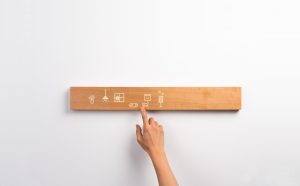 - 家と家族をつなぐ、天然木のスマートホームコントローラーです。木の表面に触れるとアイコンが浮かび上がり、照明やエアコン、スピーカーを操作することができます。家電のコントロールのほか、エネルギー利用状況の確認、天気や気温データの表示に加え、手書きメッセージや音声送信機能を搭載しています。Matter対応やSwitchBotハブミニとの連携によって、幅広い家電の操作を可能としています。