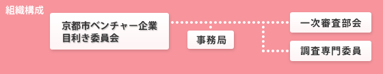| 一次審査部会 | 申請書による一次審査を行います。起業家や産業支援機関関係者及び京都市産業技術研究所職員等により構成します。 |