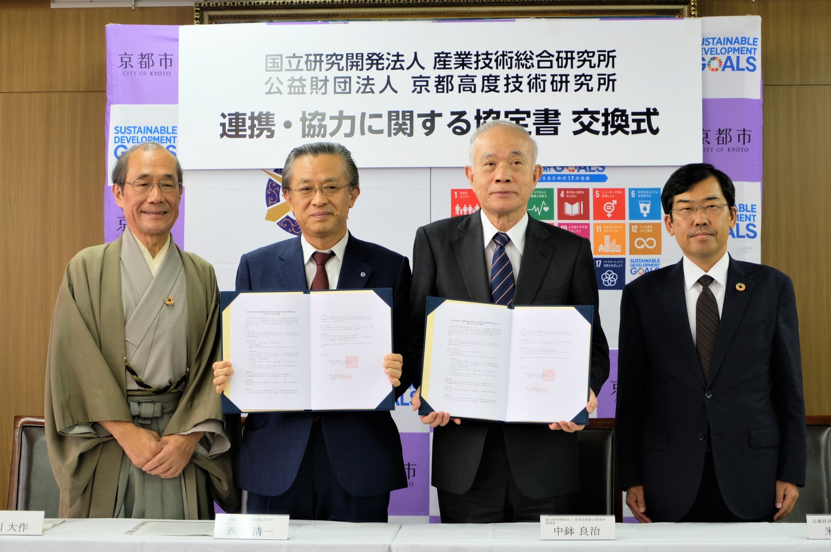 門川大作 京都市長、西本清一 ASTEM理事長、中鉢良治 産総研理事長、米村猛 近畿経済産業局長